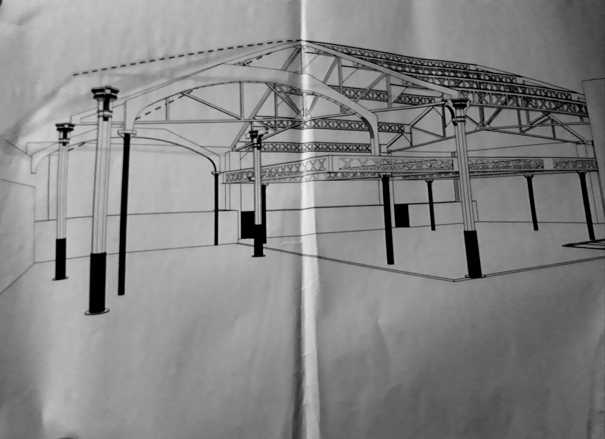 Le Hangar de style industriel, inspiré des structures Eiffel, aux poutres rivetées et à la hauteur sous plafond de 7 mètres.