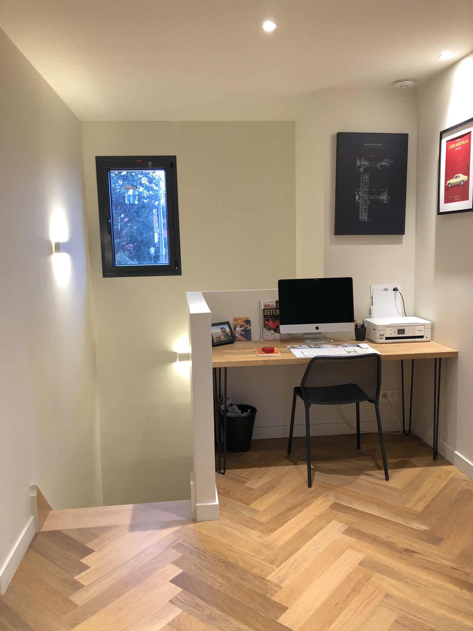 A l'étage suite parentale avec salle d'eau, 2 chambres, salle de bain, et espace bureau