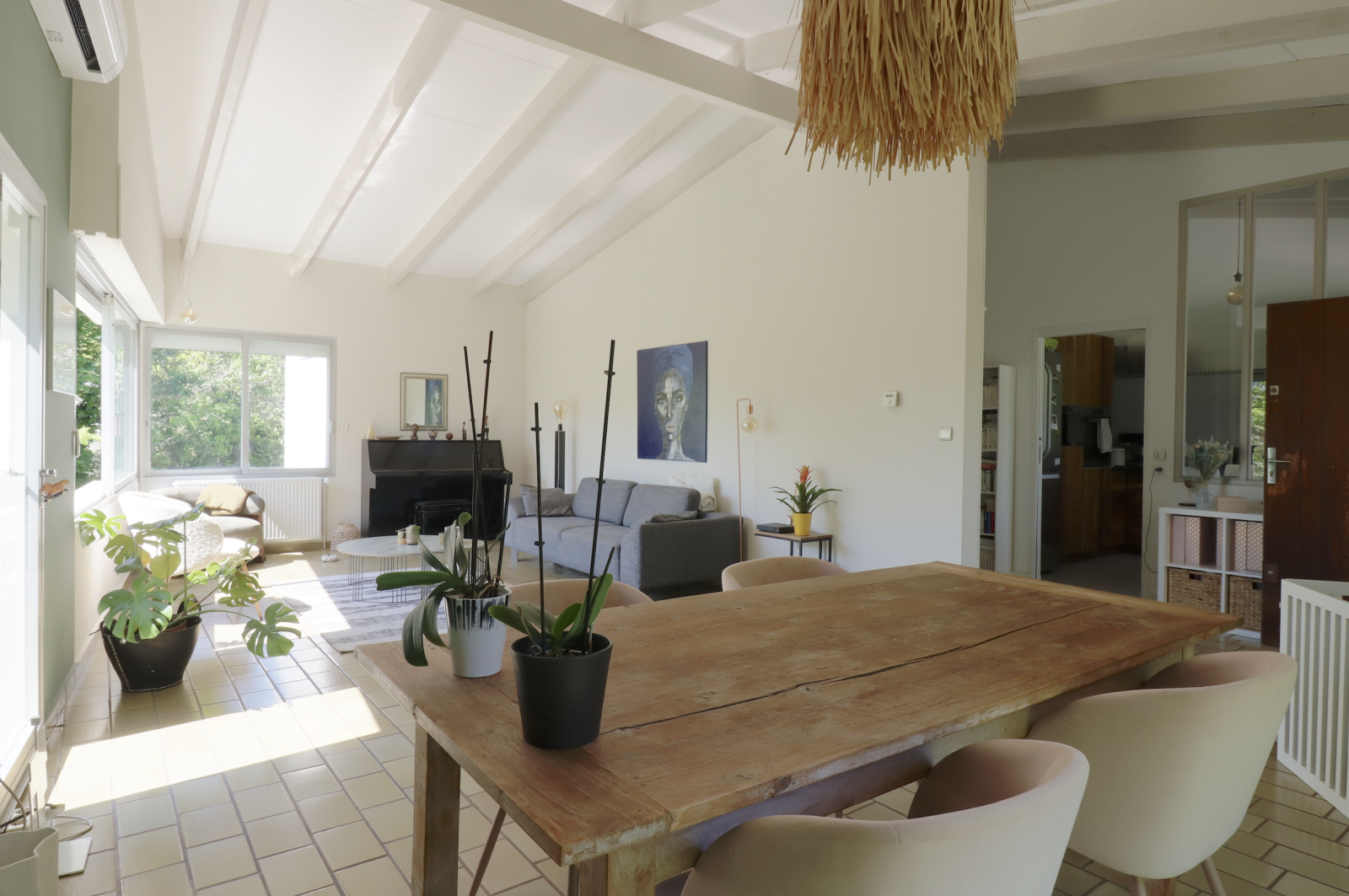 Séjour d'environ 40 m2, cuisine équipée, 4 chambres, salle de bains, salle d'eau, grand sous-sol