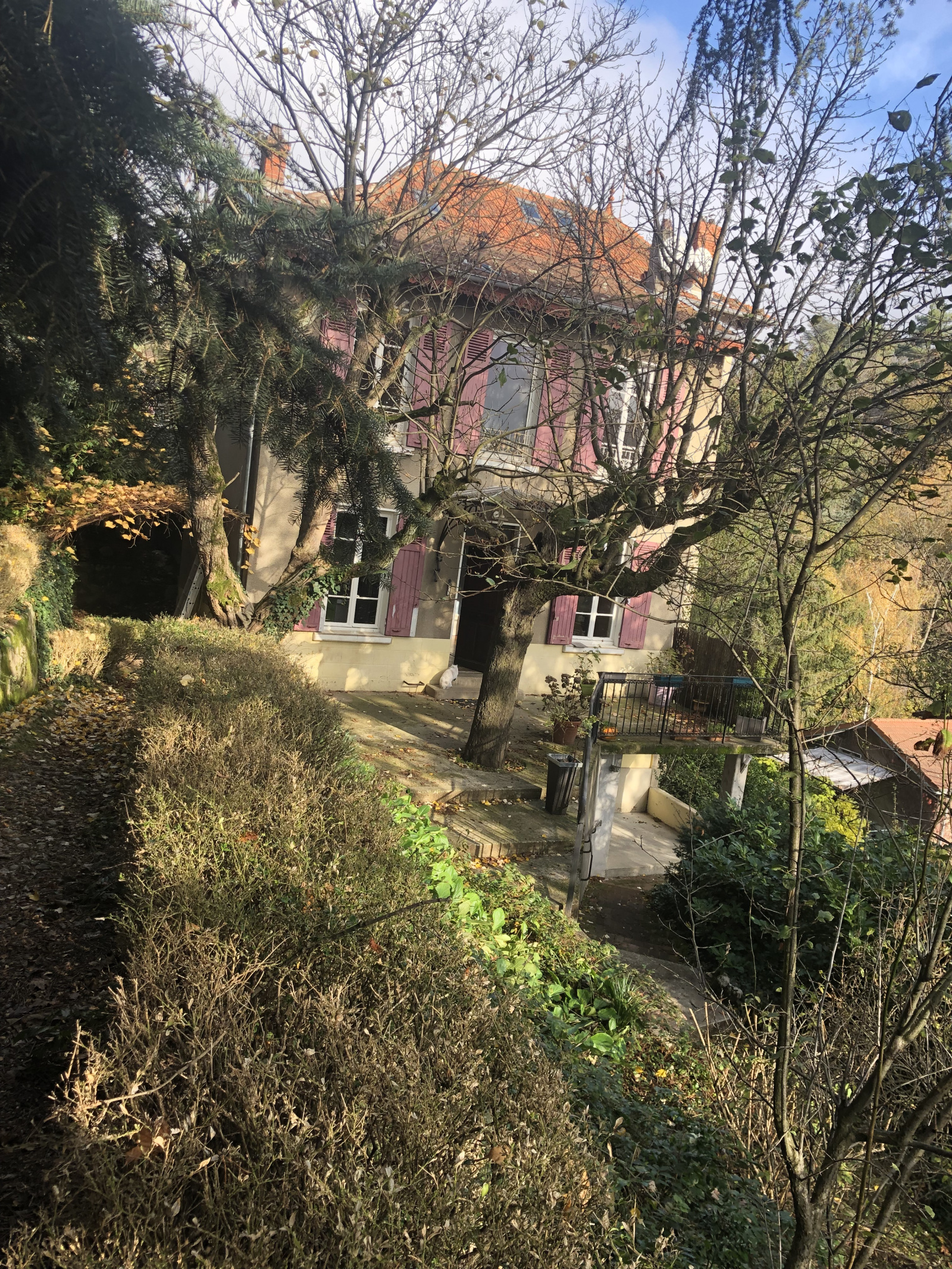Au coeur du quartier de Vassieux, avec l'école à pied, elle est implantée dans un jardin de 1500 m2 très arboré, avec une partie plate d'environ 750 m2 piscinable, et une partie pentue