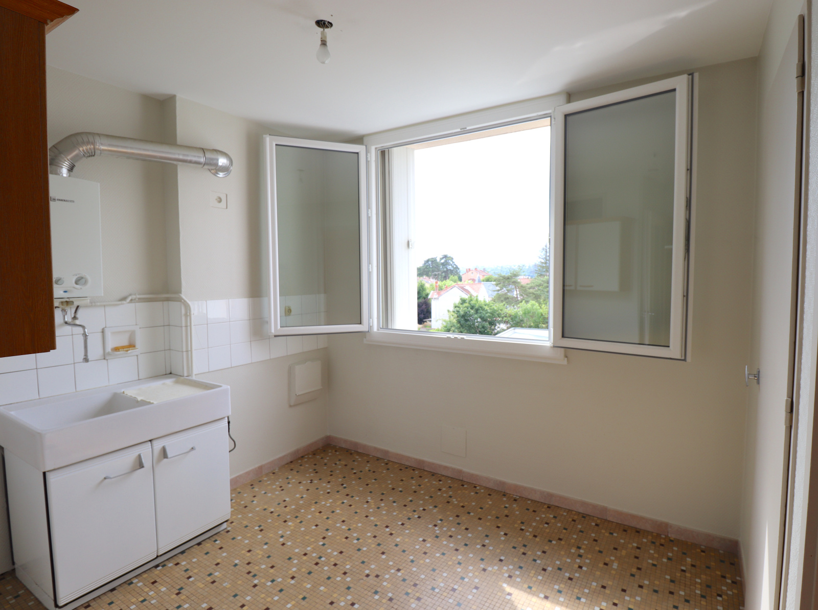 Il se compose d'une entrée avec rangements, d'un séjour avec balcon couvert et jolie vue, d'une cuisine séparée (possibilité d'ouvrir sur le séjour), de 3 chambres, d'une salle de bains et WC séparés.