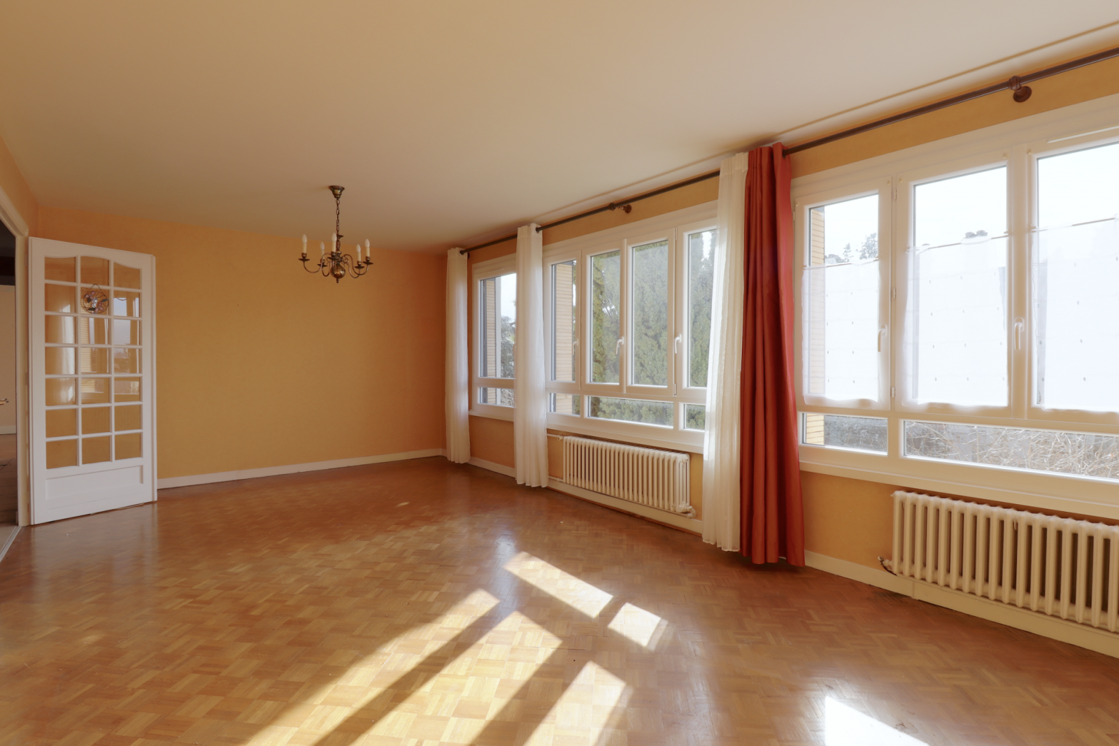 Vénissieux (69200)Exclusivité - Limite Lyon 8, à 3mn à pied du Tram T6, Arret de bus 34, écoles, collège et lycée, commerces ... Vue dégagée et bel ensoleillement- Joli T4 (possibilité T5) de 89,10 m2 au 3ème étage avec ascenseur d'un immeuble bien entretenu (façade récente). Il se compose d'un entrée avec rangements, d'un séjour en parquet mosaique orienté Sud/Est, d'une cuisine séparés et équipée, de 3 chambres en parquet mosaique dont deux donnant sur un balcon, d'une salle d'eau entièrement rénové avec douche à l'italienne donnant sur un loggia, Wc séparés.