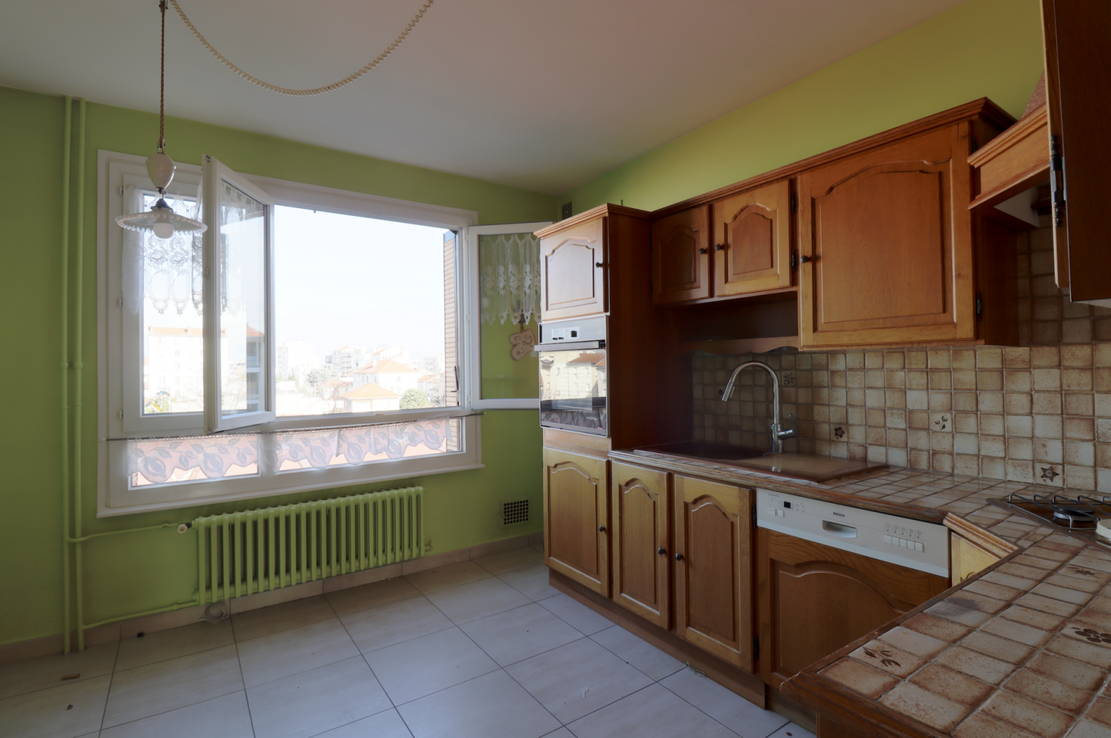 Appartement sain, carrelage récent dans le couloir et la cuisine, salle de bain neuve, parquet en très bon état, fenêtres double vitrage
