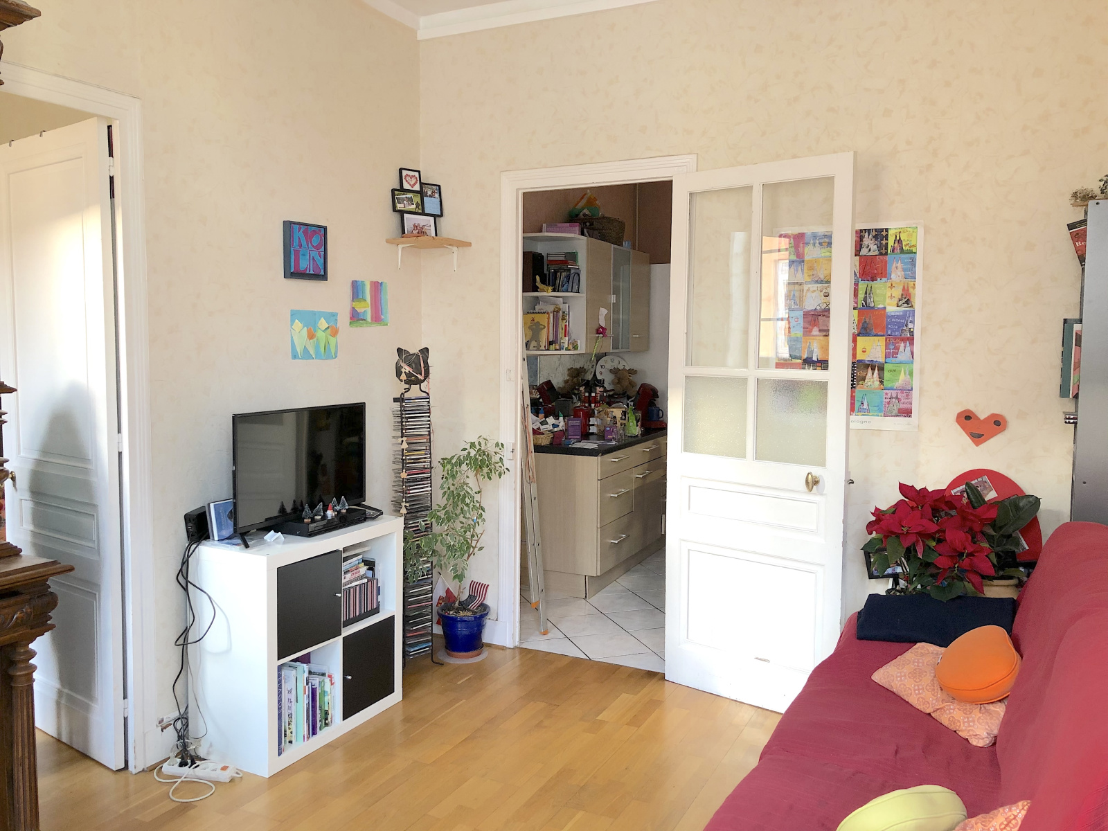 Traversant Sud / Nord il offre de beaux volumes et le charme de l'ancien. Il se compose d'une entrée avec penderie, d'un salon lumineux, d'une grande cuisine séparée (pouvant s'ouvrir sur le salon), de deux grandes chambres, d'une salle d'eau avec WC