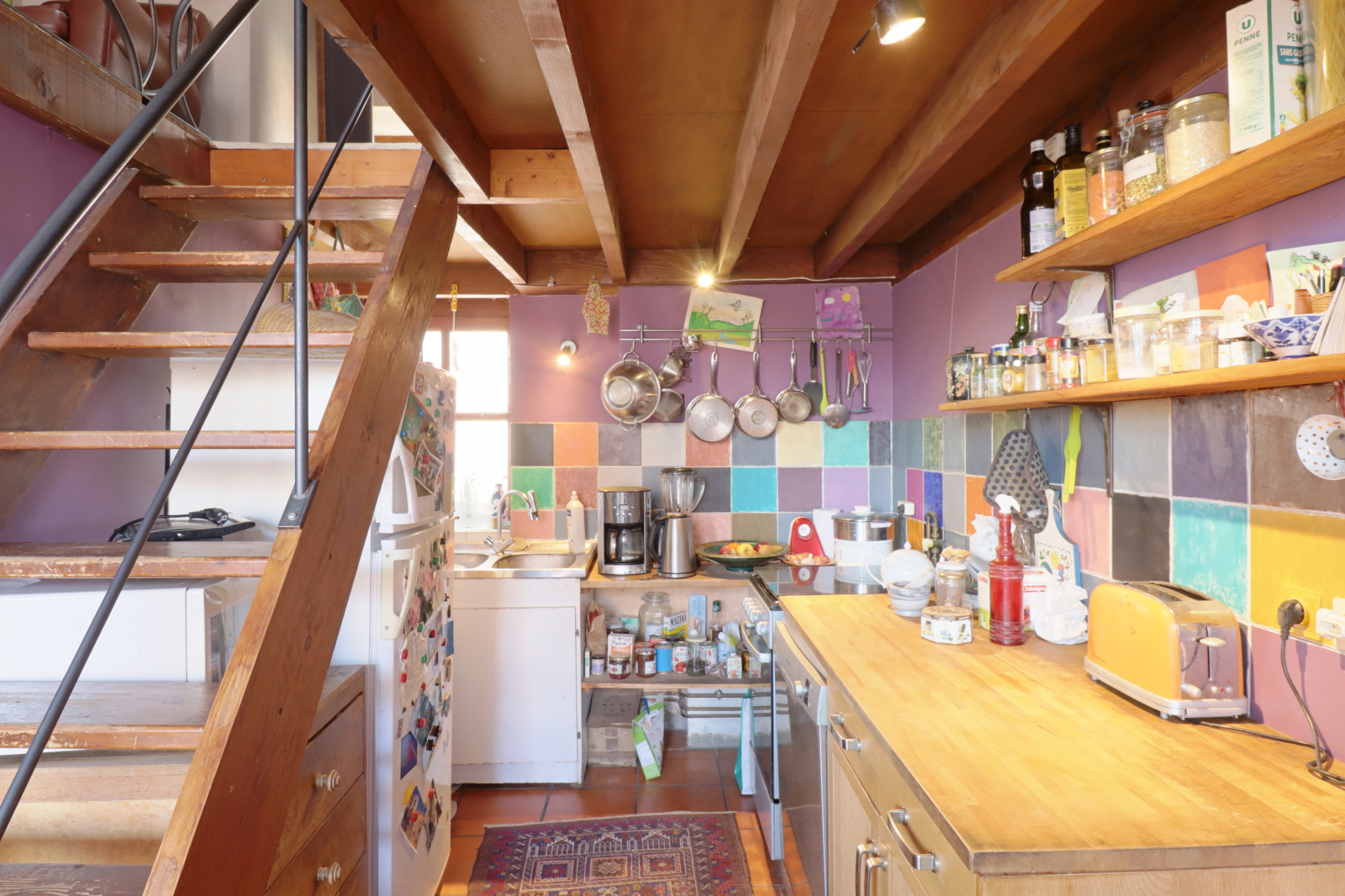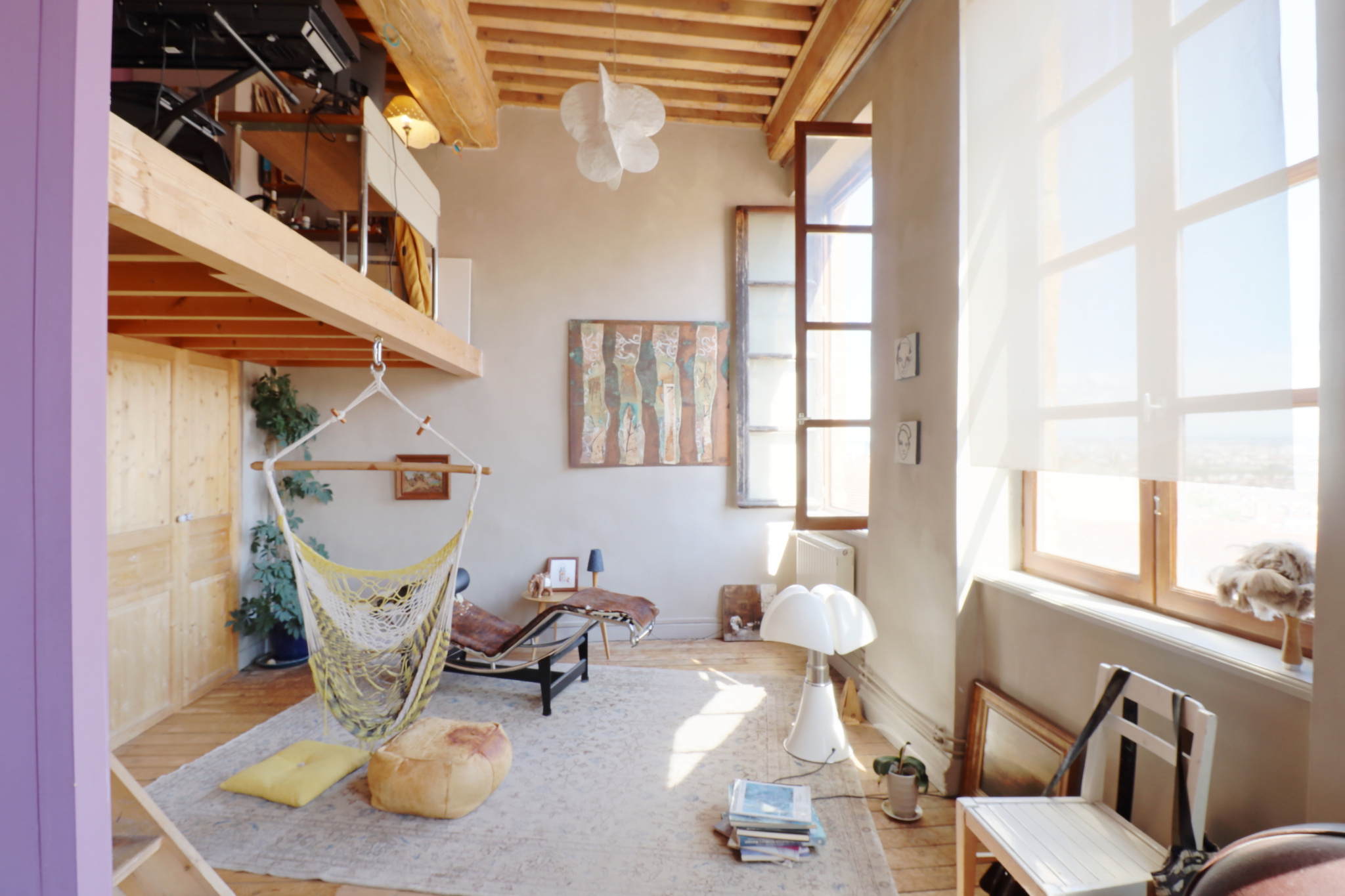 Joli canut en duplex de 3 chambres sur le haut des pentes de la Croix-Rousse et proche du plateau. D'une surface de 129m2 au sol (92m2 carrez) - vous profiterez de magnifiques volumes et d'une vue à couper le souffle sur la Presqu'île et sur la Basilique de Fourvière. Orientées au sud, les 4 grandes fenêtres viennent illuminer la pièce à vivre.