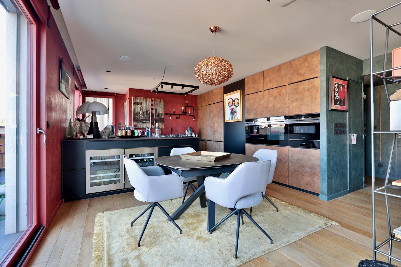 Lyon (69004)Appartement contemporain d’exception avec rooftop privatif de 120 m² et piscine en inox, offrant une vue panoramique à 360° sur Lyon, le Parc de la Tête d’Or, le Mont Blanc et les Monts du Lyonnais.