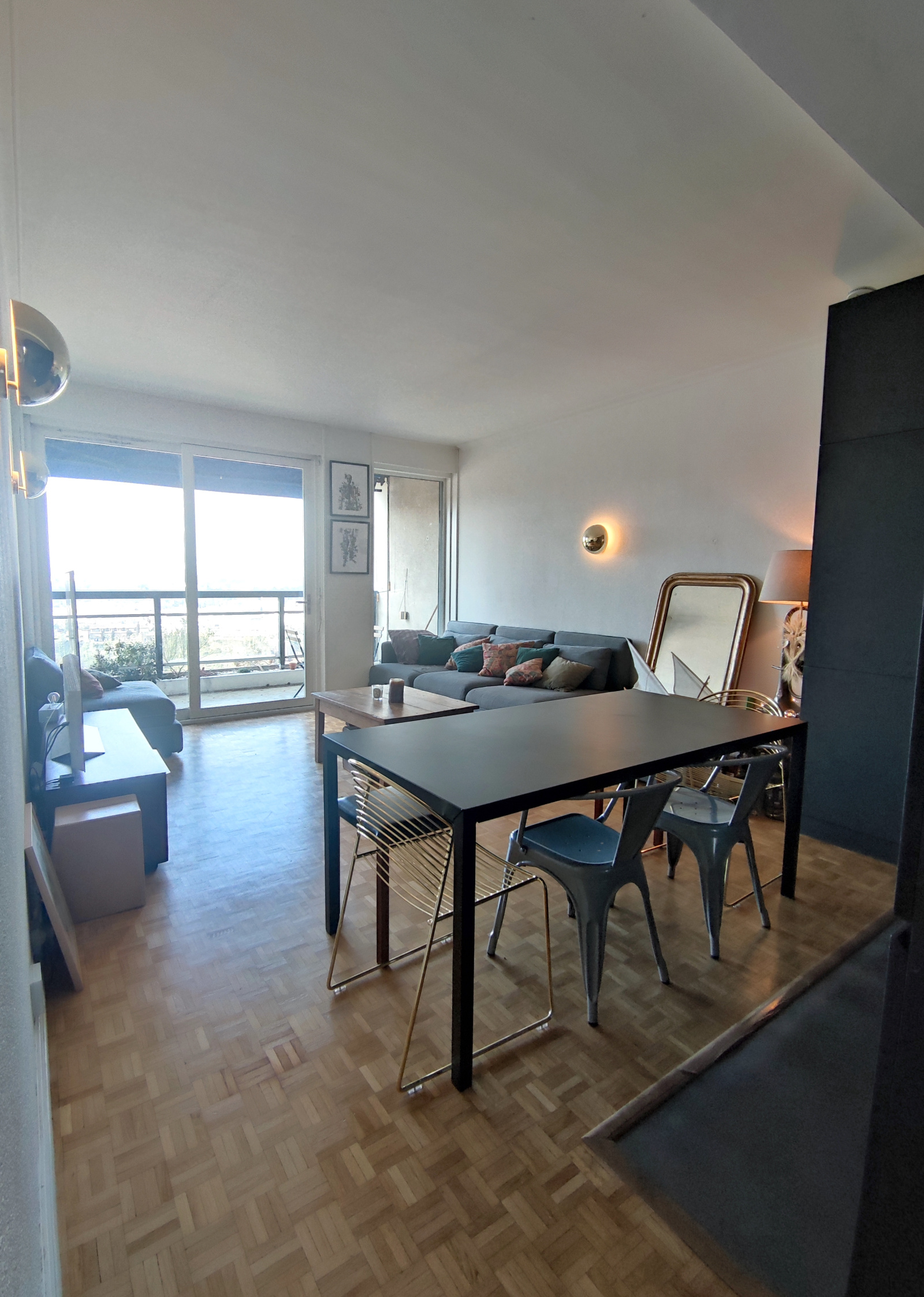 Entièrement rénové avec goût, il se compose d'une entrée avec grands placards de rangements, d'un séjour en parquets mosaïque avec cuisine ouverte et équipée, donnant sur un balcon de 6.12 m2 avec une vue imprenable sur les Monts d'Or, de deux chambres, d'une salle d'eau avec loggia permettant un espace buanderie.