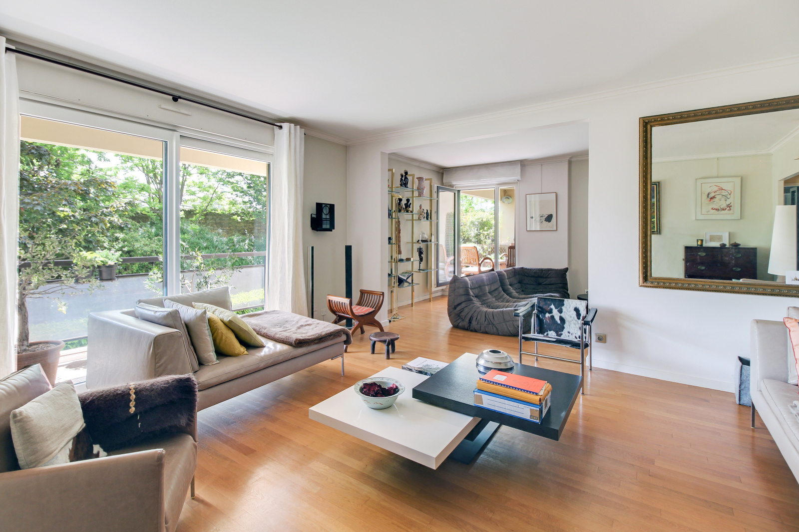 Séjour de 36 m2 en parquets chêne posés sur lambourdes, donnant sur une terrasse de 28, 40 m2 (12 m2 carrés plus balcon), Salle à manger de 20 m2 avec balcon de 5,47 m2, cuisine de 21 m2 équipée, 4 chambres (5 possibles) une salle de bains, et 2 salles d'eau Buanderie de 8 m2