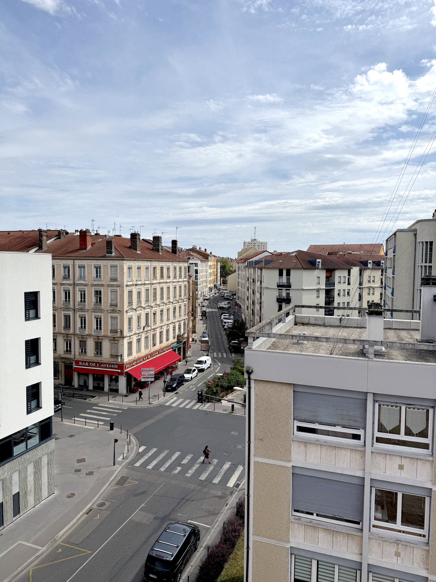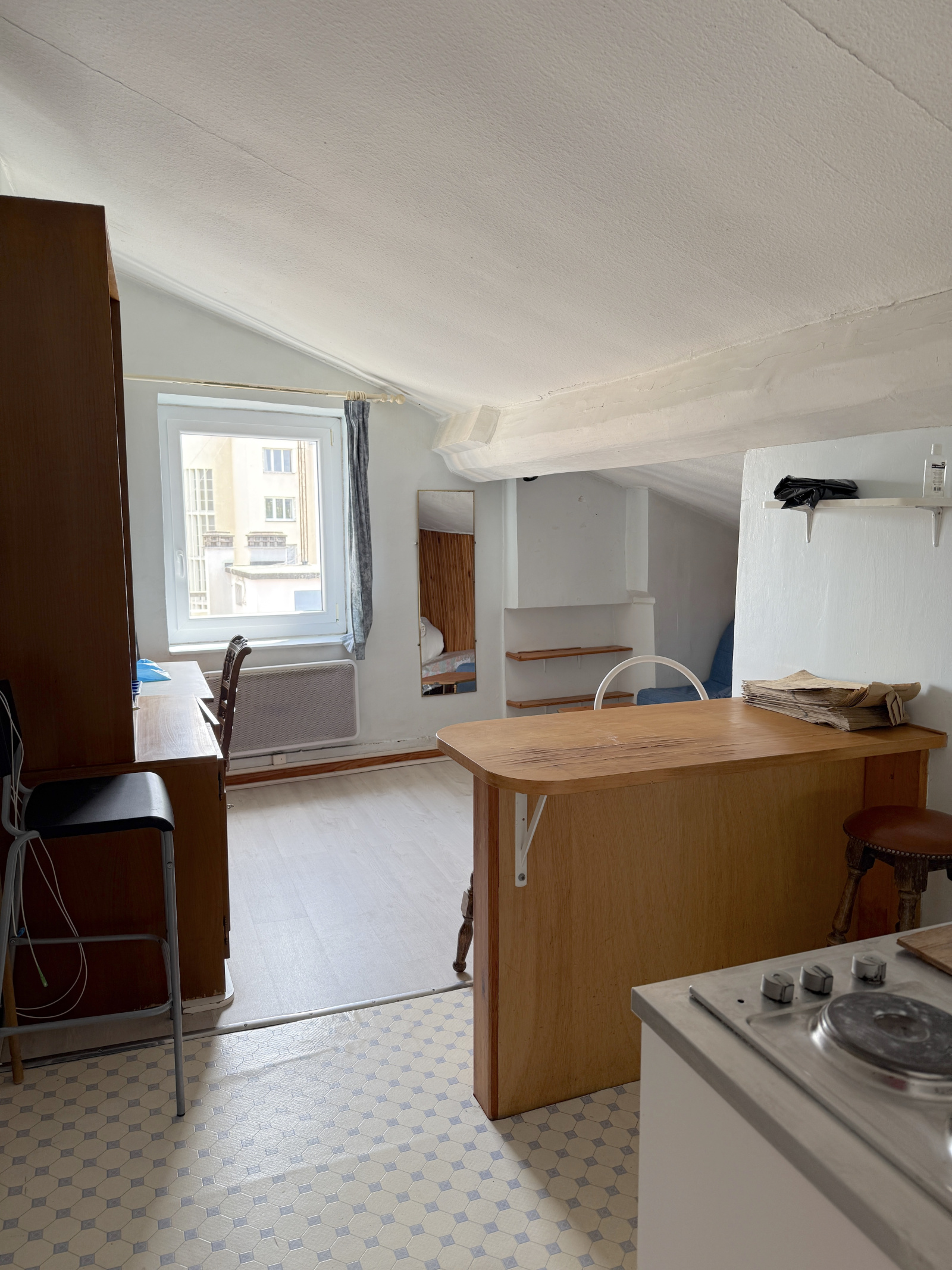 Exclusivité - Rue de Cuire - Studio meublé soupenté de 23m2 habitable dont 13,46m2 carrez, dans le quartier de la Croix Rousse, à proximité du métro Hénon. Ce bien est situé au 4ème et dernier étage d'un immeuble canut sans ascenseur. Il est composé d'une cuisine ouverte, un espace bar donnant sur le séjour avec fenêtre en double vitrage au sud, d'un espace nuit avec rangements, d'une salle de bains avec baignoire et WC sanibroyeur.
