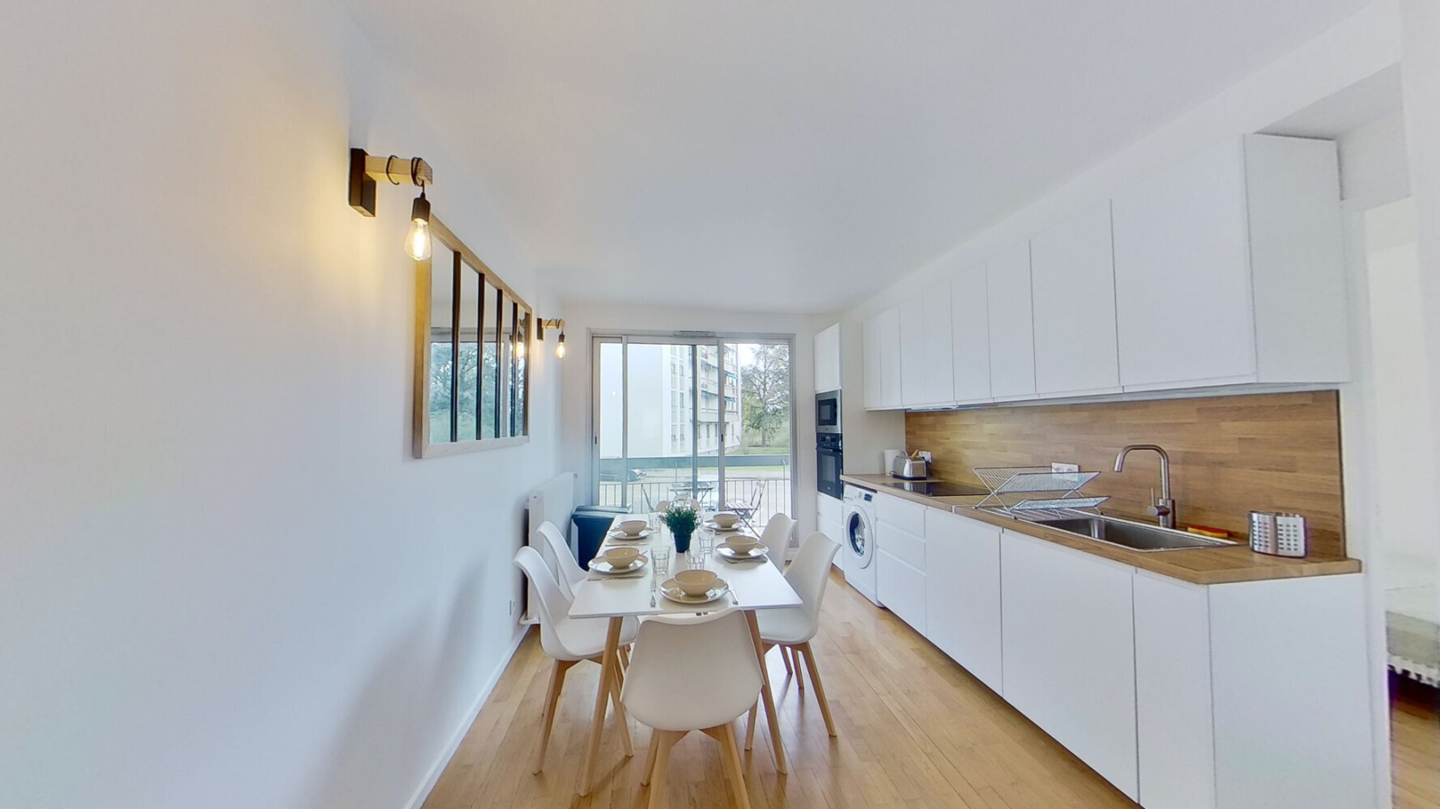 Cet appartement T7 vous propose : une grande cuisine toute équipée (four, micro-ondes, lave-vaisselle, lave-linge, deux grand réfrigérateur) ouvrant sur un séjour avec écran plat et un balcon filant, deux salles de bain avec douche et un WC indépendant. La chambre à louer est 100% meublée et équipée d’un espace de travail. L’appartement est doté de la fibre très haut débit.