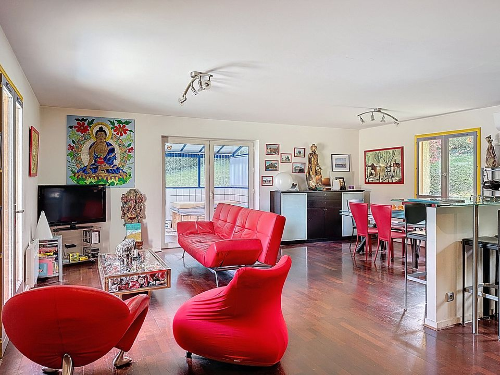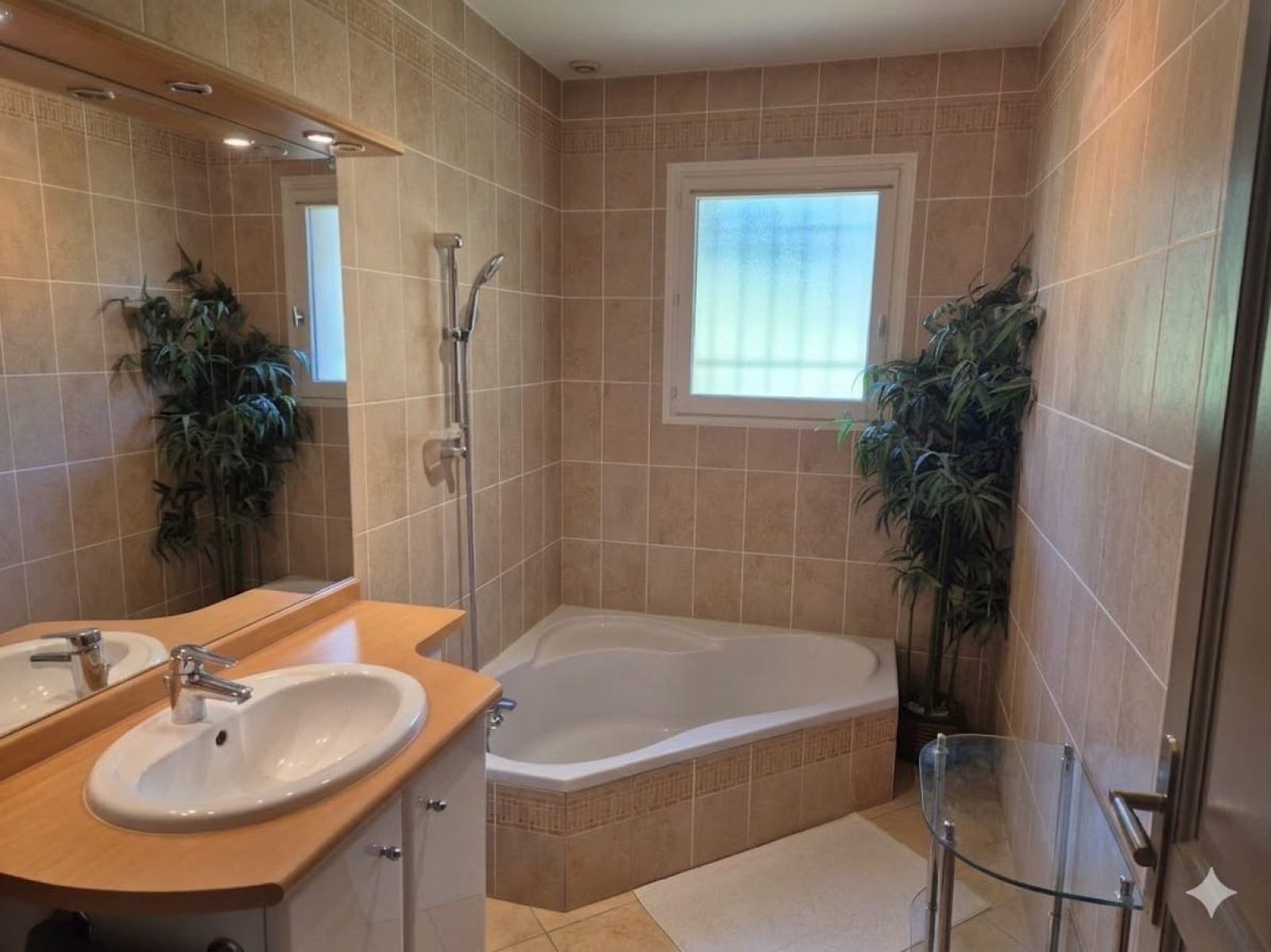 La maison offre un beau séjour Sud Est avec cuisine ouverte donnant sur une véranda équipée d'un Jacuzzi. 3 chambres dont 1 grande , salle d'eau et salle de bains.