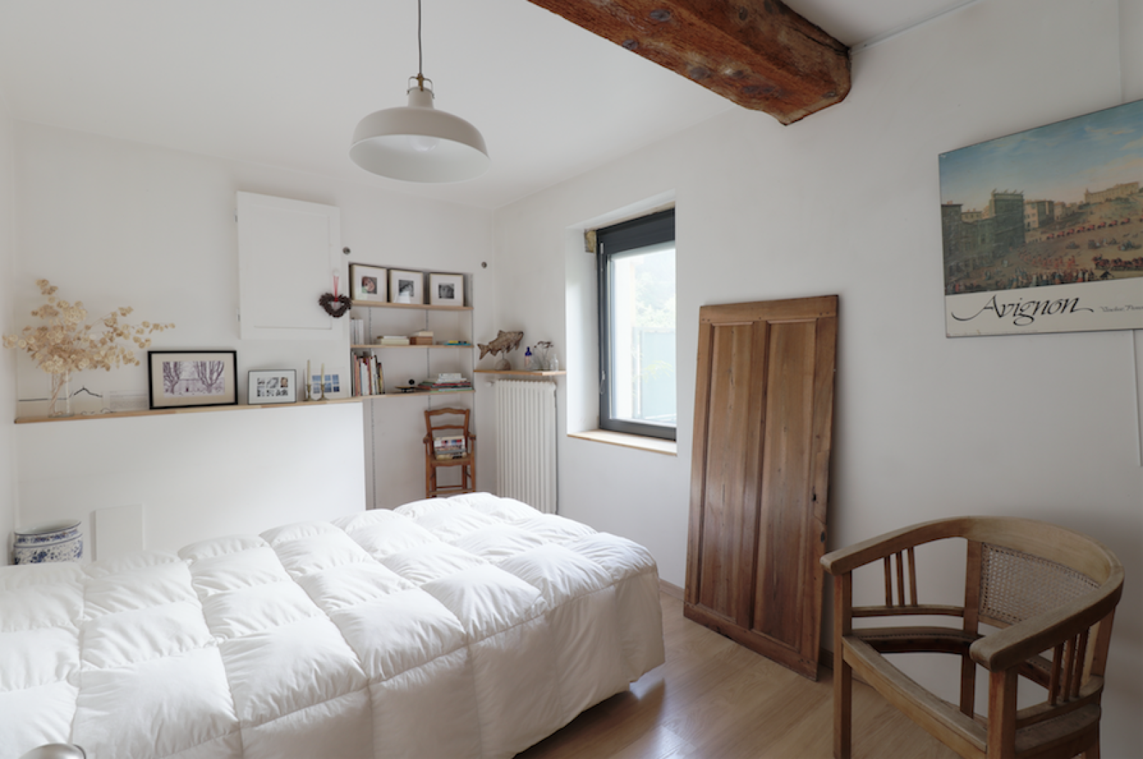 une cuisine ouverte et équipée, et une chambre avec salle d'eau et wc séparés.