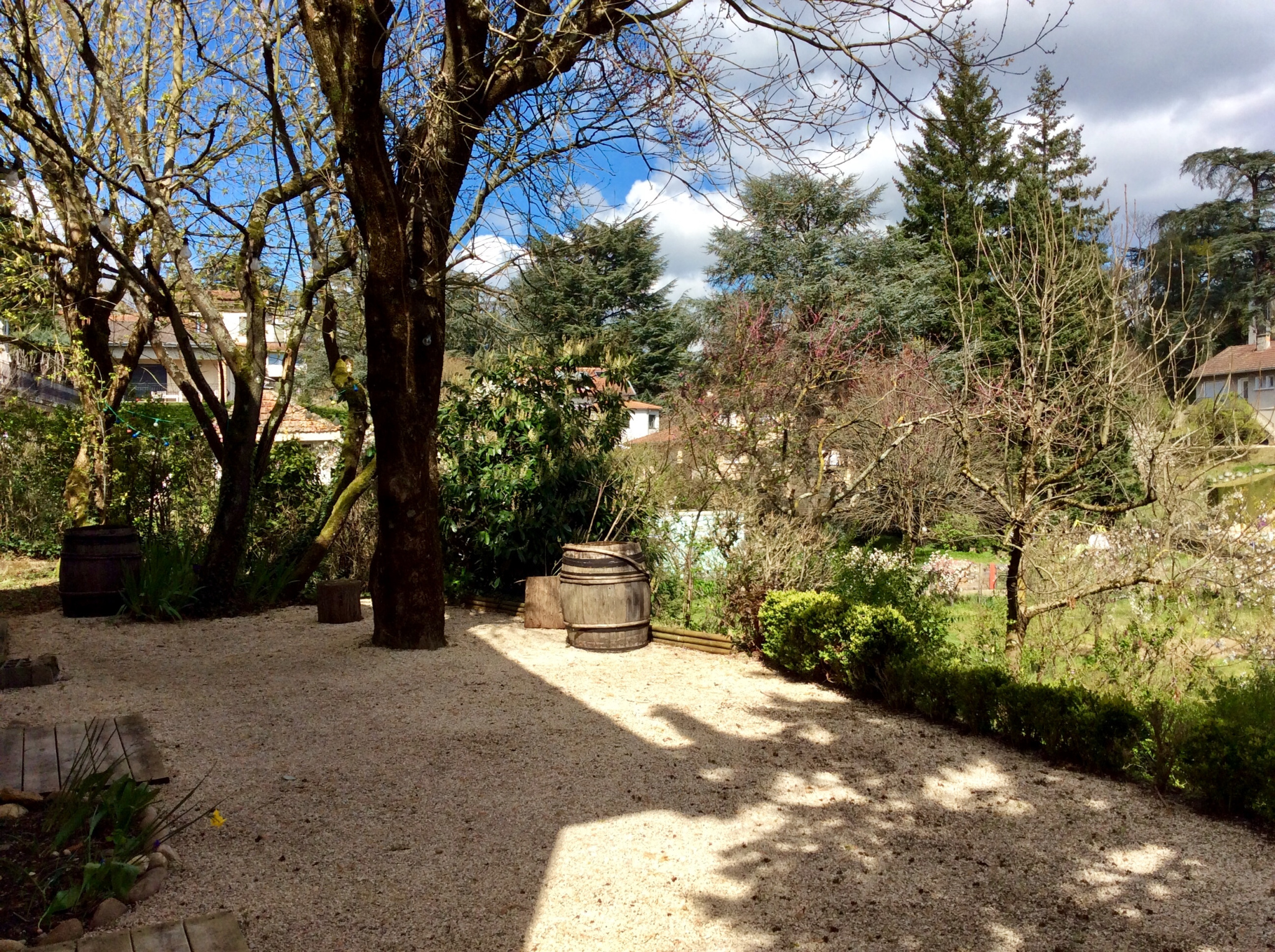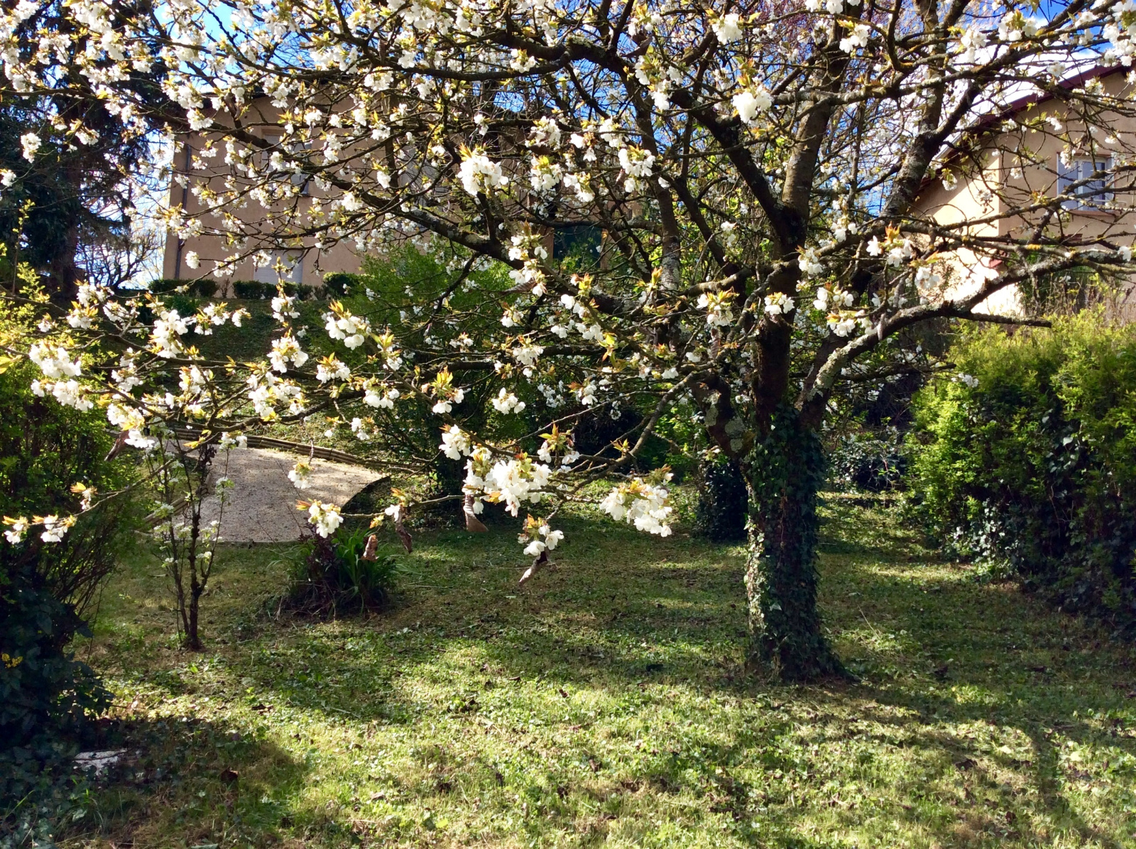 Vous serez séduits par le jardin qui entoure la maison, la glycine accrochée au balcon et, légerement plus bas, un joli terrain arboré et piscinable à l'abri des regards.