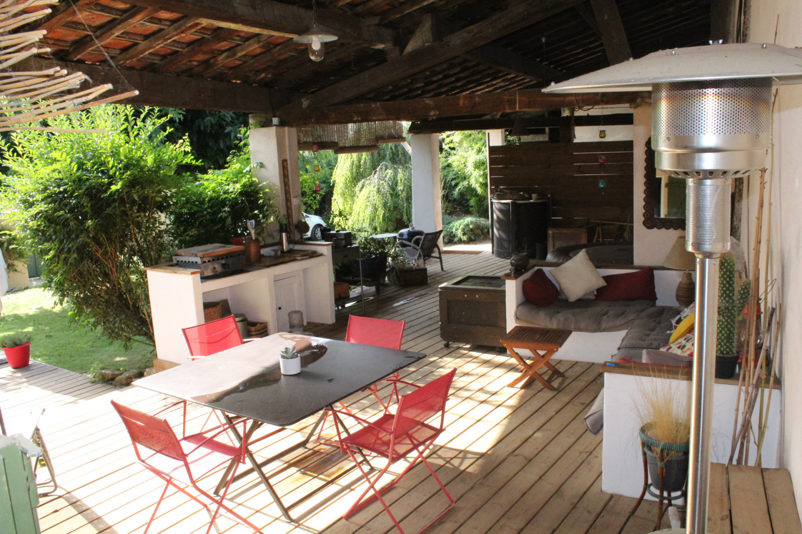 Rillieux-la-Pape (69140)NOUVEAU - Coup de Coeur - Vancia - Un Véritable Havre de Paix vous attend avec cette ravissante Maison de 1900 disposant d'une surface de 157 m2 + 189 m2 de Dépendances Aménageables Terrain 585 m2 Un potentiel fou qui doublera votre surface actuelle Nous disposons au Rez-de-chaussée d'une Cuisine ouverte sur Salon avec Poêle à Bois puis Salle à manger indépendante Bureau Buanderie-Cellier Wc A l'Etage 3 Chambres Salle de Bains avec Baignoire et Douche Wc Indépendant. A l'Extérieur Nous profitons d'un Agréable Jardin avec une Terrasse en Bois recouverte d'un Grand Préau où l'on bénéficie d'un SPA d'un Salon d'été pour ainsi apprécier les belles soirées estivales et automnales puis Cave- Local de Stockage tout est là ! Dans l'enclos de la propriété nous bénéficions d'un Stationnement couvert pour 2 véhicules et non couvert pour 5 De très grands et beaux volumes sont encore à exploiter pour aménager Chambres Bureaux Studios On peut se rendre facilement à pied à l'Ecole de Vancia La Proximité d'Axes Autoroutiers permet de se rendre à St Exupéry en 25 minutes mais aussi la ligne C5 côté Bus. En accord complet avec les besoins d'une famille