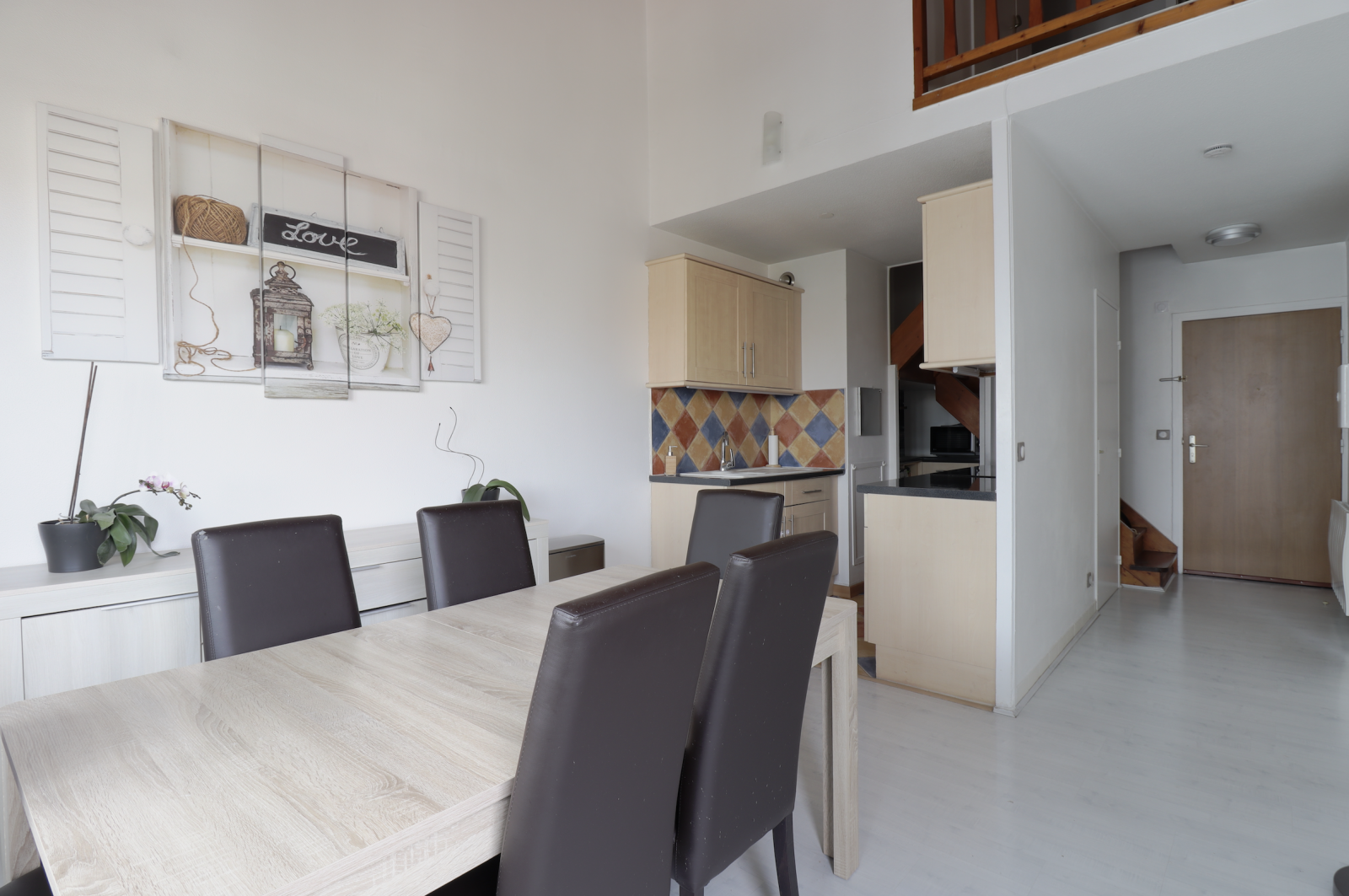 Décines-Charpieu (69150)Exclusivité - Dernier étage - Au coeur du centre de Décines avec tram à 1mn, commerces, écoles - T3 en duplex de 54.30m2 carrez (58,71m2 habitable) qui se compose d'une entrée avec rangements, un séjour donnant sur un balcon de 3.50m2 avec cuisine ouverte et équipée, une chambre avec grand placard de rangement, à l'étage, un espace bureau, une seconde chambre avec rangement, une salle d'eau avec wc.