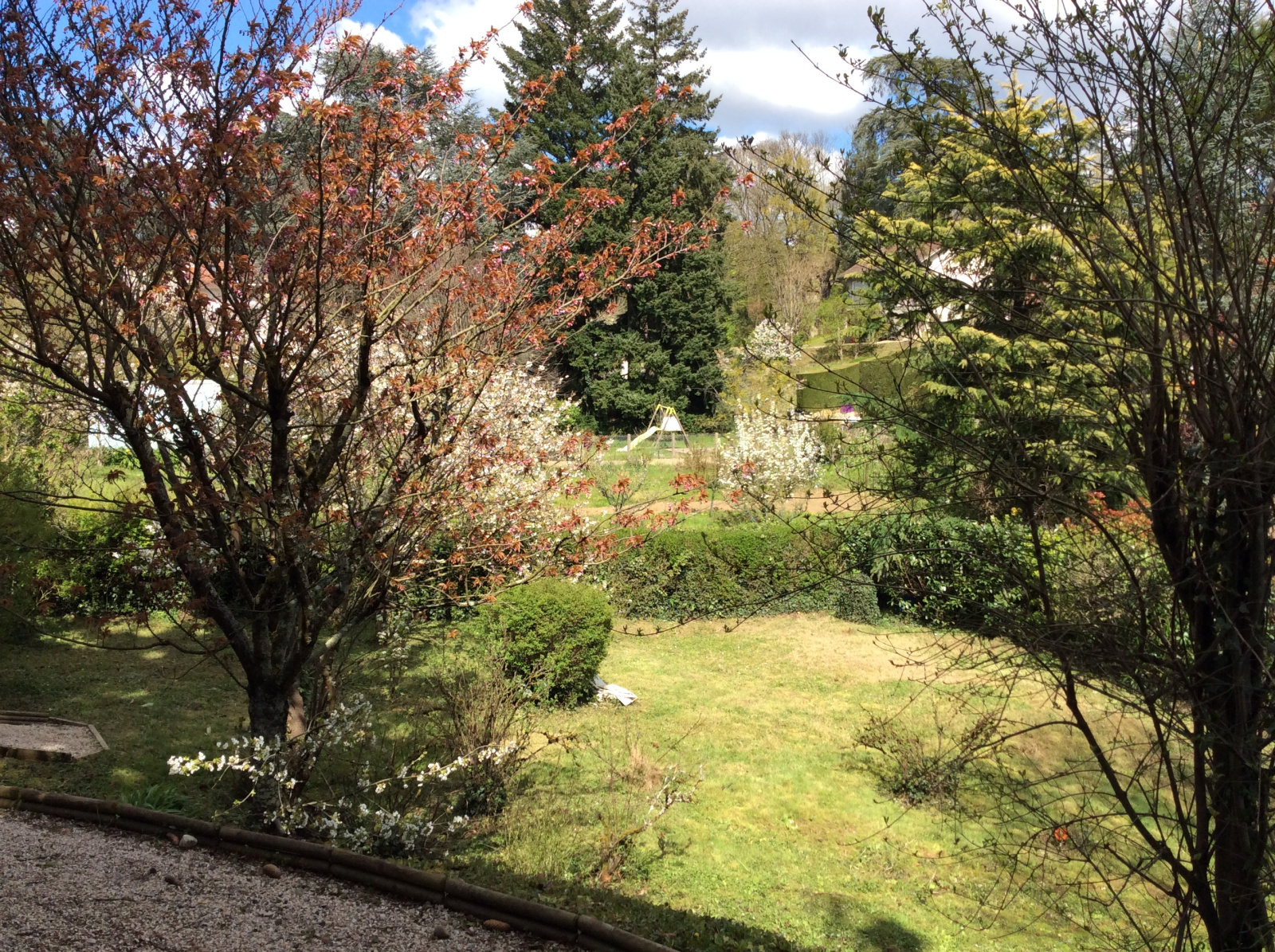 Vous serez séduits par le jardin qui entoure la maison, la glycine accrochée au balcon et, légerement plus bas, un joli terrain arboré et piscinable à l'abri des regards.