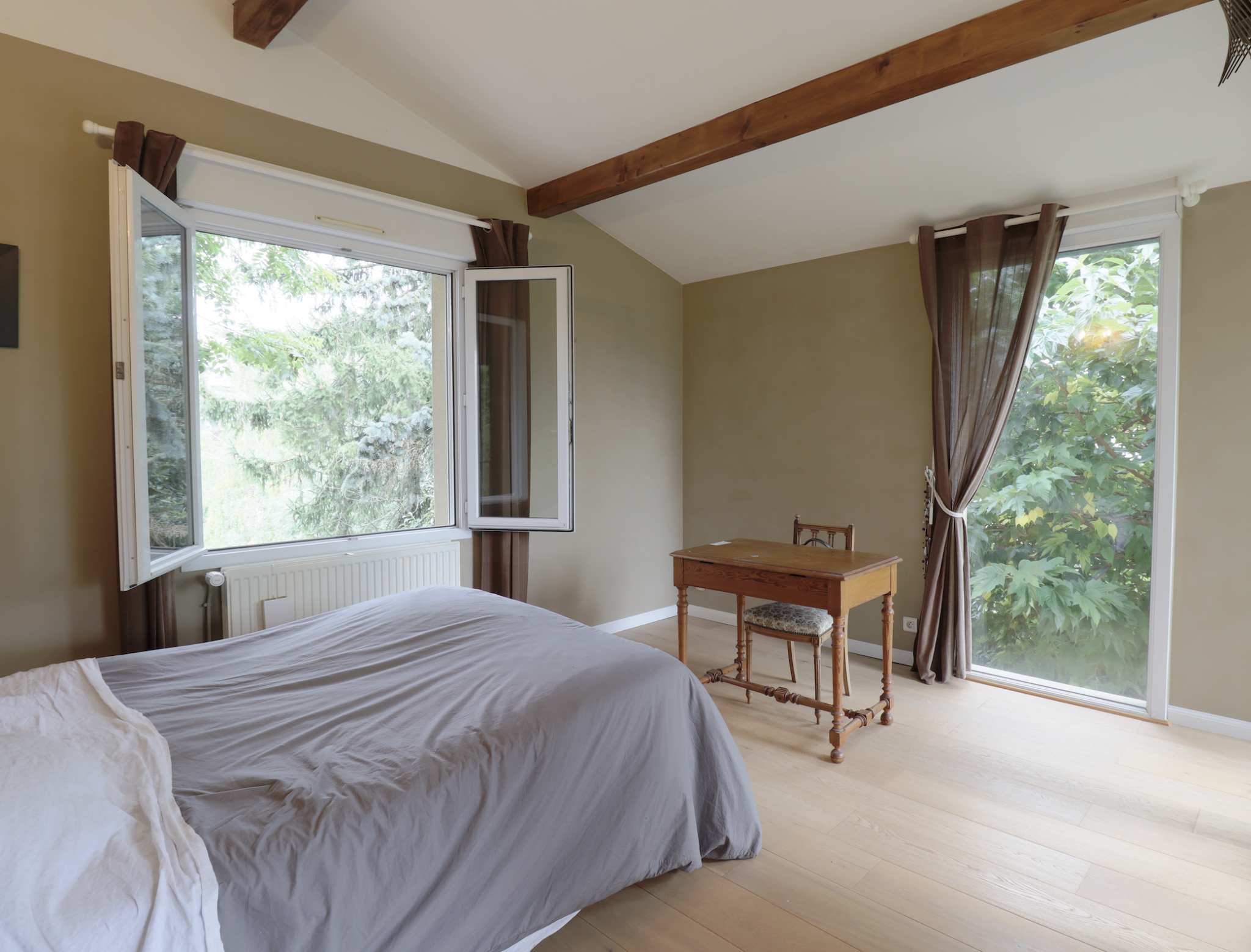 Le 2ème étage vous propose un bel espace de vie d'une quarantaine de m2 utiles (26 m2 Carrez) comprenant une vaste chambre ou salle de jeux/télé selon les besoins, un coin bureau/dressing et un grenier