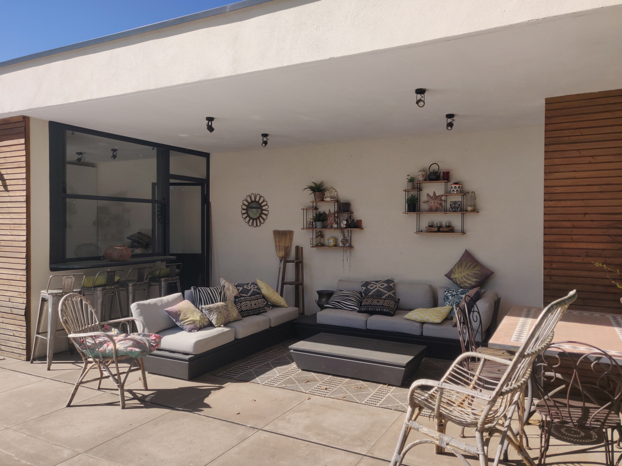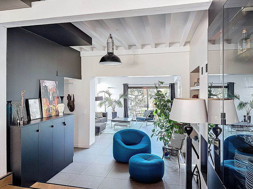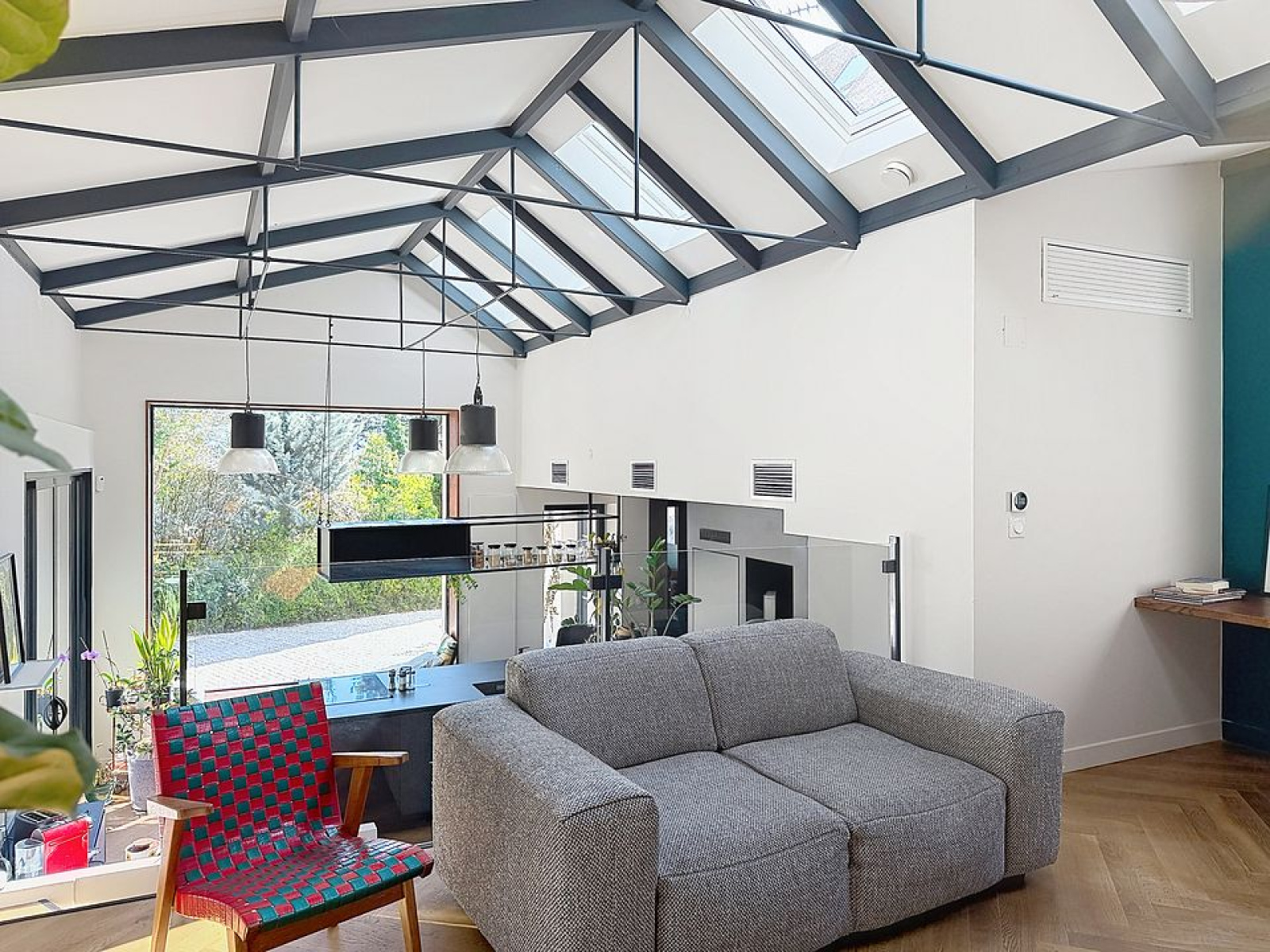 Une rénovation complète ainsi qu'une magnifique extension de style contemporain a été réalisée en 2019 : elle a permis de créer une circulation fluide entre la cuisine, le salon et un espace télé/détente séparé de la cuisine par quelques marches, le tout parfaitement ouvert sur le jardin.