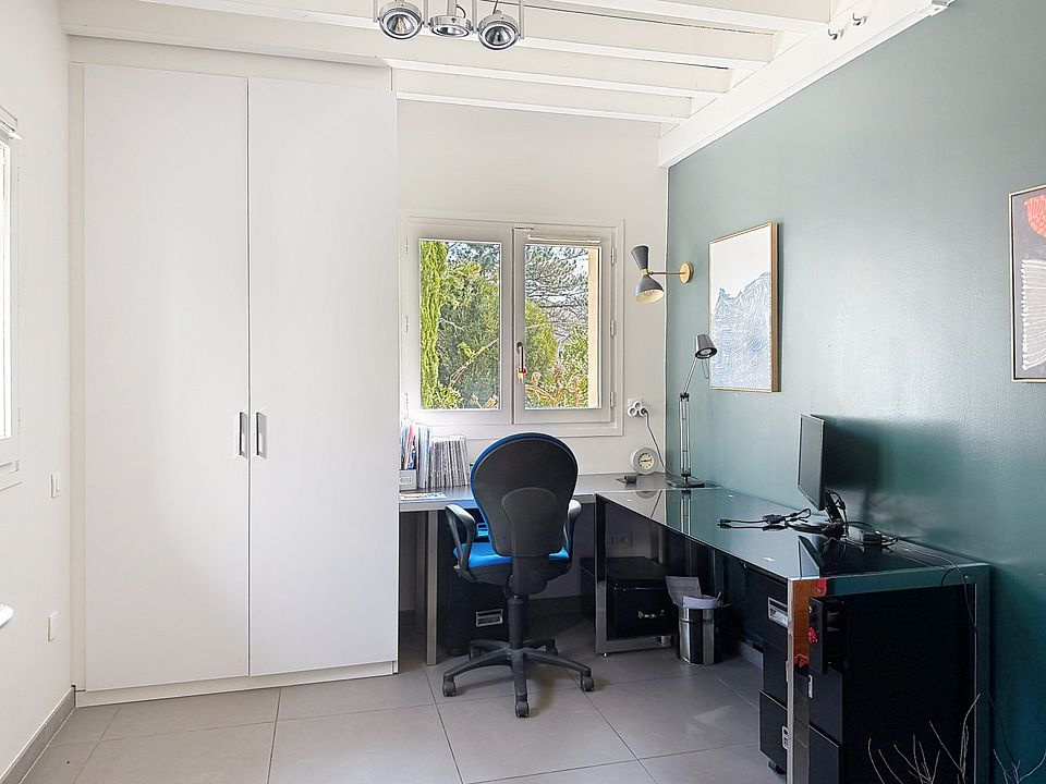 Une chambre d'amis, près d'une salle d'eau avec toilettes complète cet espace du rez-de-chaussée ainsi qu'un bureau proche de l'entrée.