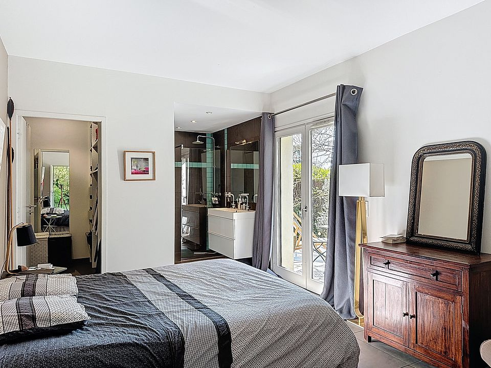 Sur le même niveau de la maison et toujours dans un cadre lumineux très agréable puisque donnant sur la terrasse, se trouve l'espace parental avec sa salle de bain et son dressing.
